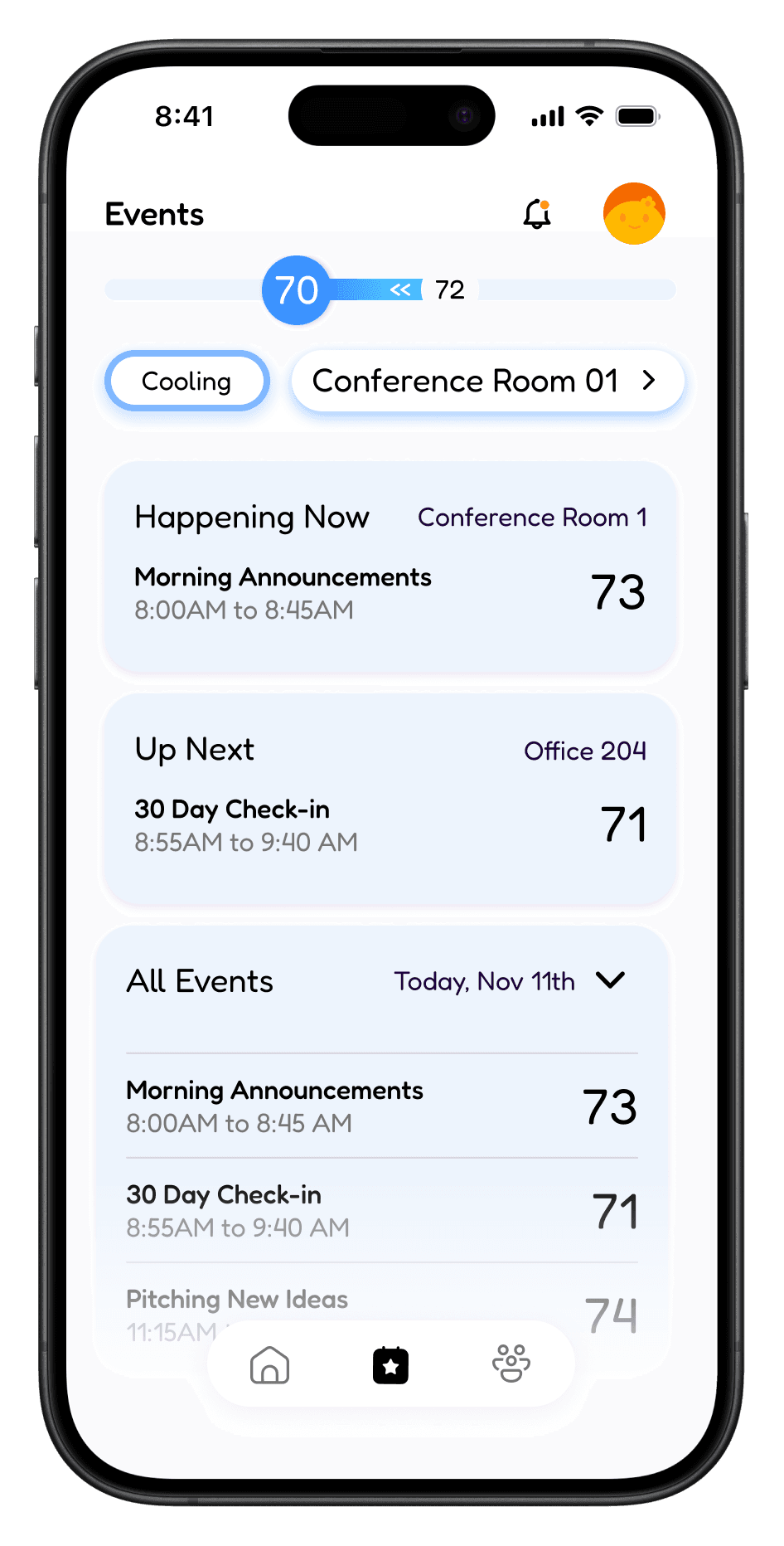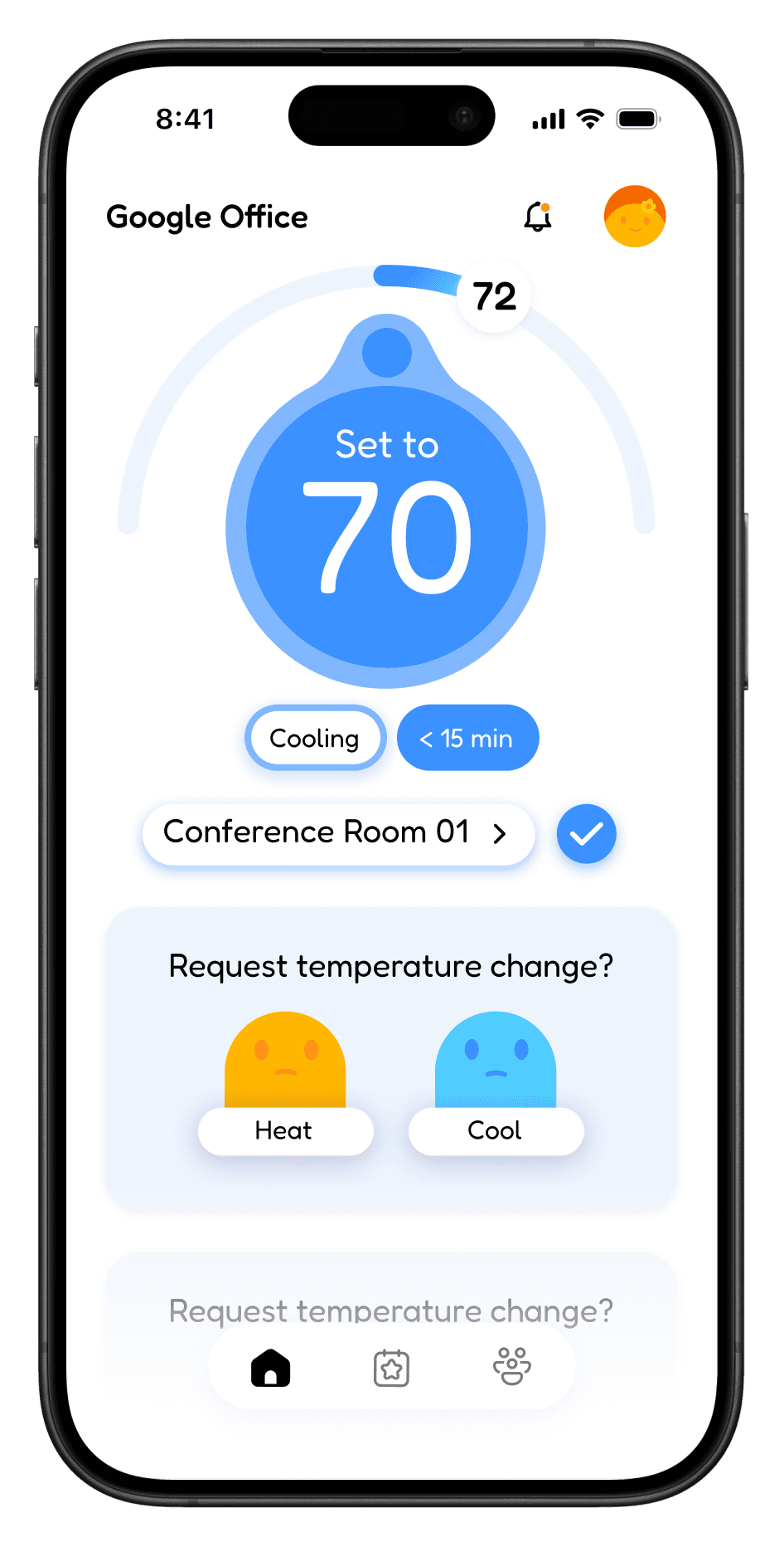 With our paired app, employees have the ability to request a temperature change to be averaged with the collective.
